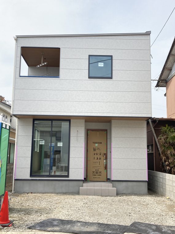 まもなく完成の「リラクス西須賀Ⅰ」の外観です!こちらの外壁はライトグレーの色味なのですが、暗すぎず明るすぎず、丁度いいくすみカラーで個人的にとってもおすすめです。今回は濃いグレーの窓サッシでアクセントカラーを入れていますが、シャイングレーやシルバーなどの明るい色でまとめるのも良さそうです♪ぜひ現物を見にきてくださいね!