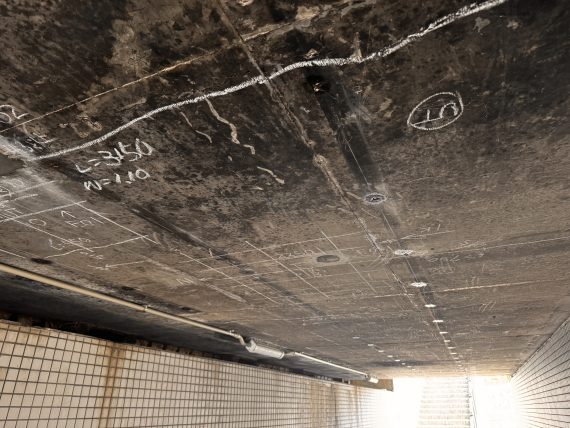 散歩途中に見つけた、おそらく当時の工事期間中に書かれたメモたち。ざっと30年以上前のものだと思いますが、今でもしっかり判読できることに驚きです。これは橋の下なのですが、当時の職人さんたちが現場で色々微調整しながら作り上げたのかなあと想像しながら歩くのも楽しい時間でした。