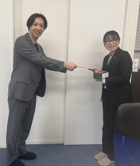 第10期の優秀賞を進呈しました。昨年立ち上げた民泊事業に最初から携わり6施設を新規オープンさせて稼働。一年で事業の柱を一本作ってくれました。彼女も初めは不安だったと思いますが勇気を持って挑戦し、自分の殻を破って新たな自分へと成長していったことを経営者として嬉しく思います。ありがとう!優秀賞おめでとう!