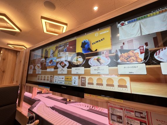 回転寿司はどんどんパワーアップしてますね。1つ1つの席にこんなに大きなタッチパネルがついていてデジタルでお寿司が回ってきます。視覚的にも楽しいしこれまでの小さなタッチパネルより注文しやすい。ゲーム?みたいなのもできて子どもが楽しめるようになってました。技術の進歩がすごい。