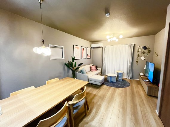 テレビの裏になる壁にエコカラットというタイルをはりました。タイルはタイルでもデザイン性と機能性を持ち合わせたタイルなのです。迷ってしまうほどたくさんのデザインがあって、これだけでオシャレ空間になりますし、調湿や消臭までしてくれる優れもの。オシャレで働き者とはすごいやつです。
