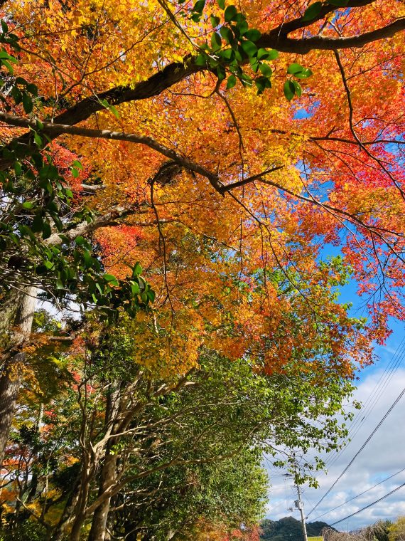 先日、大窪寺に行ったときに綺麗な紅葉を見ることができました!まだすべてが紅葉しているわけではありませんでしたが、緑の葉と赤やオレンジの葉のコントラストが印象的でたくさんの人が紅葉を見に来ていました。お遍路さんもたくさん歩いていて、山奥ながら活気があって楽しかったです!