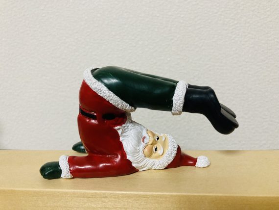 あっという間に12月に入りましたね!クリスマスムードが高まってきていますが、最近雑貨屋さんでyogaサンタという商品に出会いました。サンタとヨガを組み合わせるという発想が面白くて、今回はこのスキのポーズのサンタさんを思わず買ってしまいました。なんとも言えないこの表情が良いですね。