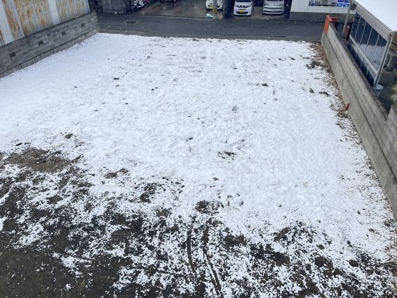 先週の雪すごかったですね。一時的ではありましたが、ピークの時間はけっこう吹雪いてました。その時間にちょうど建売の案内でしたので車から玄関までの間だけで私の肩や頭にも雪が。2階から隣の土地を見たら普通にちょい積もり。この土地に今から平屋を建てる予定。完成は夏前。楽しみ。