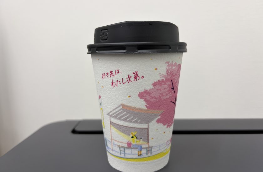 コンビニコーヒーのカップも春らしくなってきました。桜はあと少しで見られるかな。「行き先は、わたし次第」って、無限の可能性を感じられていいね。いつまでもそういう気持ちでいよう!