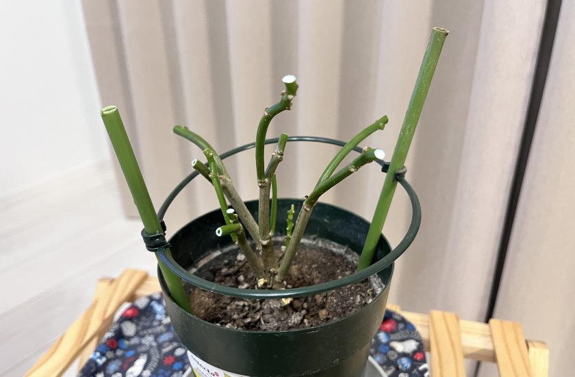 昨年冬から育てているポインセチアの剪定をしました。剪定と植替えをすることで5年くらいは綺麗な葉を楽しめるらしいです。剪定後は茎もとっても短くなってしまったので、はたしてもう一度葉がつくのか今からドキドキです、、。うまく育ちますように。