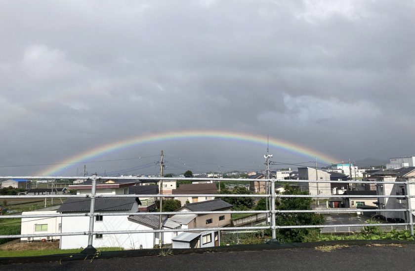 雨上がり、車で走っているとめちゃくちゃ大きな虹が!なかなか虹の始まりから終わりまでを見ることがなかったので、テンションが上がりました。雨はあまり好きではありませんが、虹が見れると何か良いことが起こりそうな予感がします。