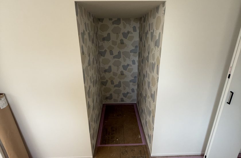 高松のとある現場。お客様の希望で階段下のスペースを利用してお子様のための秘密基地を作りました。奥まっていていい感じです。そして中のクロスをよーく見ると「ムーミン」がいるのです!ちょっと遠くから撮り過ぎて拡大してもほぼ見えませんが、ぜひムーミンを見つけてみてください!それにしてもかわいい秘密基地です。12月中旬の完成が楽しみです。