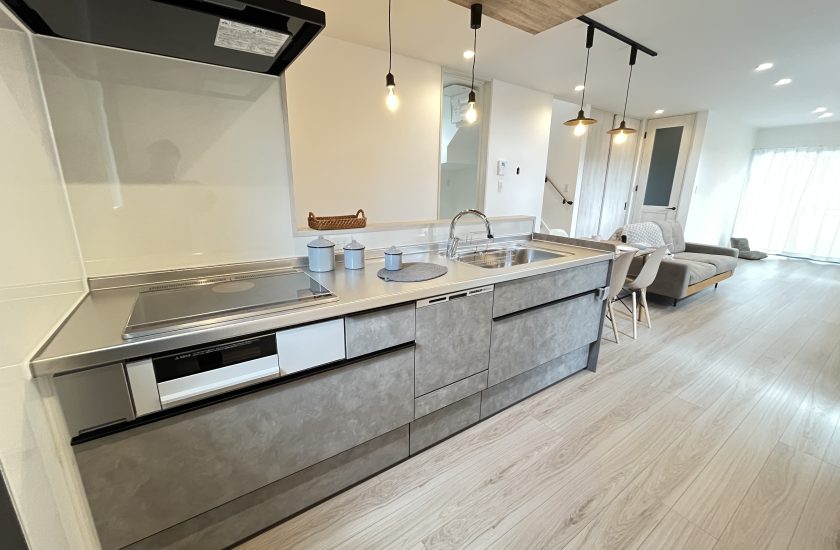 横並びダイニングに下がり天井をプラスしていい感じに仕上げました。下がり天井や折り上げ天井を採用するお客様もいますが、どこからどこまでをして壁紙を何にするかなど、意外と自分で決めないといけないことが多いです。折り上げ天井ならさらに増えますので要注意です。